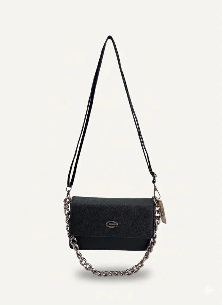 O que encanta Ă primeira vista Ă© a textura refinada do couro granulado preto fosco, que confere Ă Bolsa XQ um visual exclusivo e sofisticado. Seu design retangular e compacto evidencia a modernidade aliada Ă praticidade, equilibrando presença marcante e discrição. O logo metĂĄlico oval, delicadamente posicionado, adiciona um toque premium sem exageros, mostrando que a verdadeira elegĂąncia estĂĄ nos detalhes. A combinação da corrente metĂĄlica prateada com a alça de couro preta nĂŁo Ă© apenas um elemento estĂ©tico, mas um sĂmbolo do cuidado em unir resistĂȘncia e conforto, valorizando cada instante do seu dia.