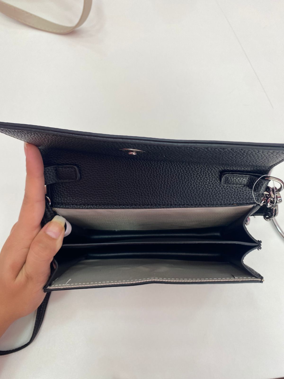 | Alça | Corrente metålica prateada + alça de couro preta |