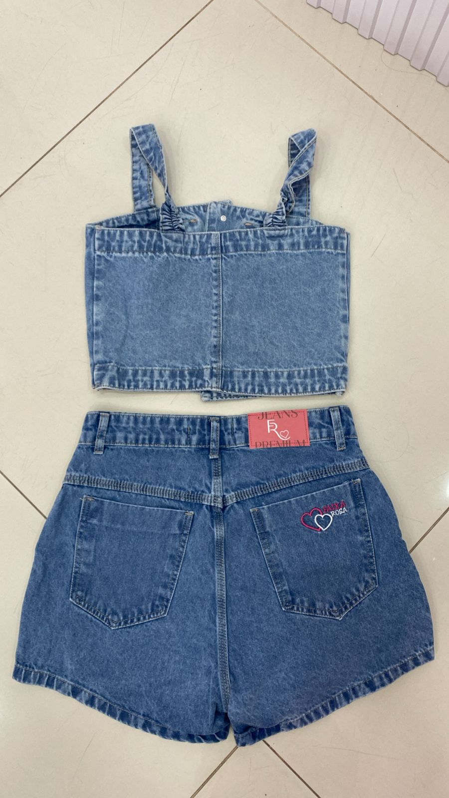 Feito em jeans 100% resistente e sem lycra, o conjunto oferece durabilidade e mantém sua forma mesmo após múltiplos usos, refletindo a qualidade que a Bela Charmy merece. Seu tecido estrutural proporciona firmeza sem abrir mão do conforto, favorecendo um caimento que valoriza as curvas com perfeição e segurança. Disponível nos tamanhos 38 ao 44, foi pensado para se ajustar ao corpo de maneira impecável, acompanhando cada movimento com liberdade e elegância.
