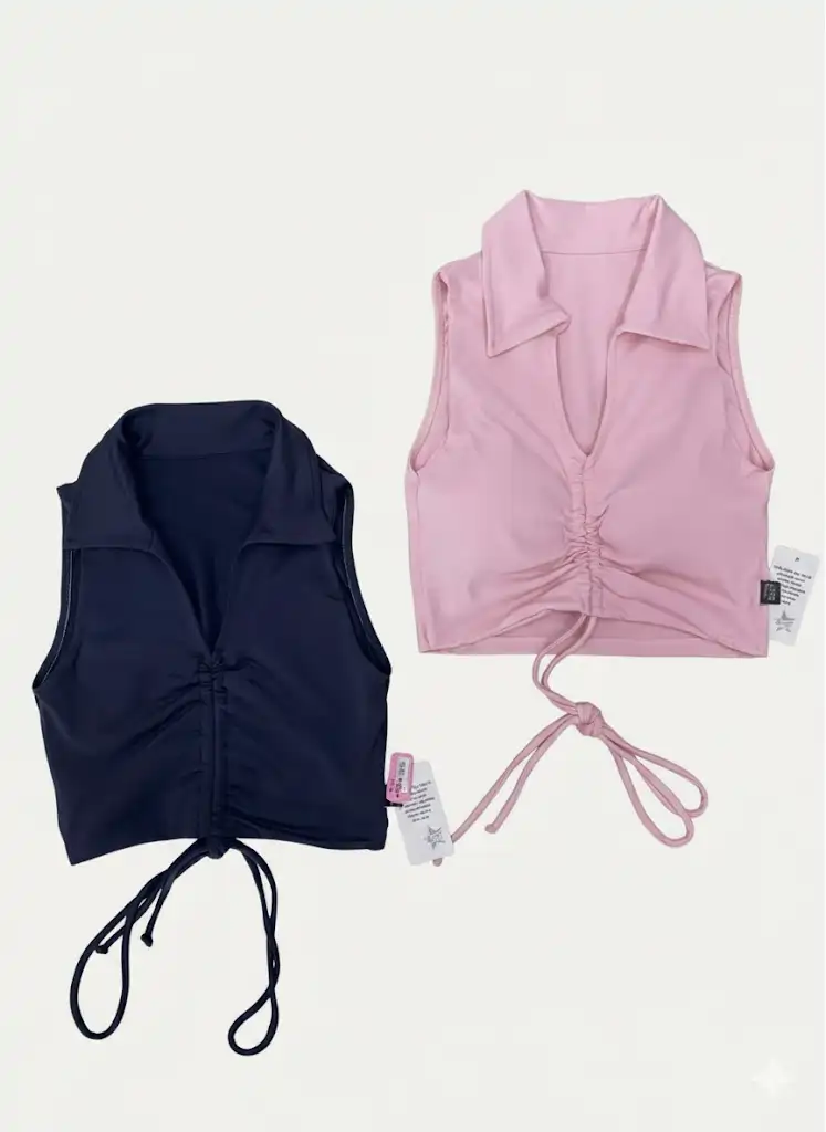 | Modelo | Cropped com Gola Polo e Zíper Ajustável Feminino |
