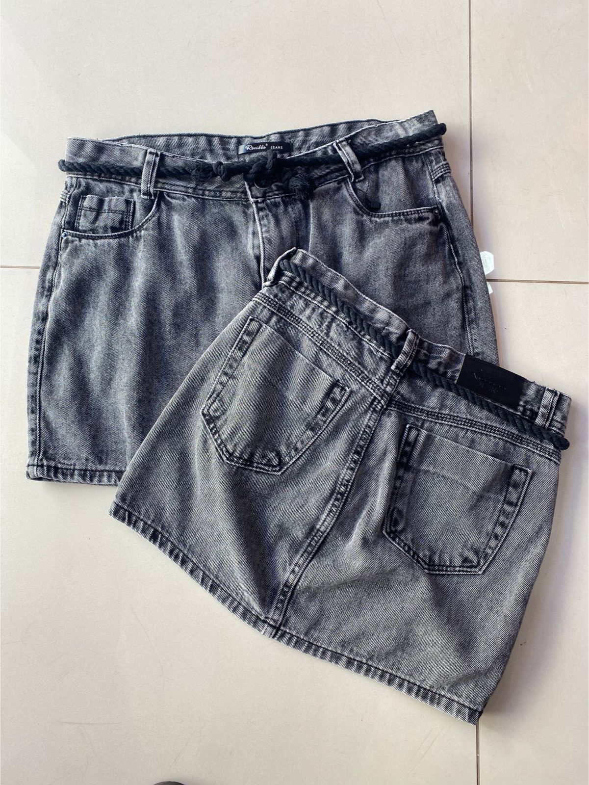 O acabamento fosco da saia revela a textura clássica do denim, enquanto o tom cinza grafite apresenta um leve desbotamento que confere personalidade e originalidade ao design. O toque final fica por conta do cordão trançado na cintura, que não só garante um ajuste personalizado, mas também adiciona um charme artesanal e fashionista, tornando cada peça exclusiva. Os bolsos frontais presentes reforçam o estilo prático e urbano, ideal para acompanhar o ritmo do seu dia a dia com muito estilo.