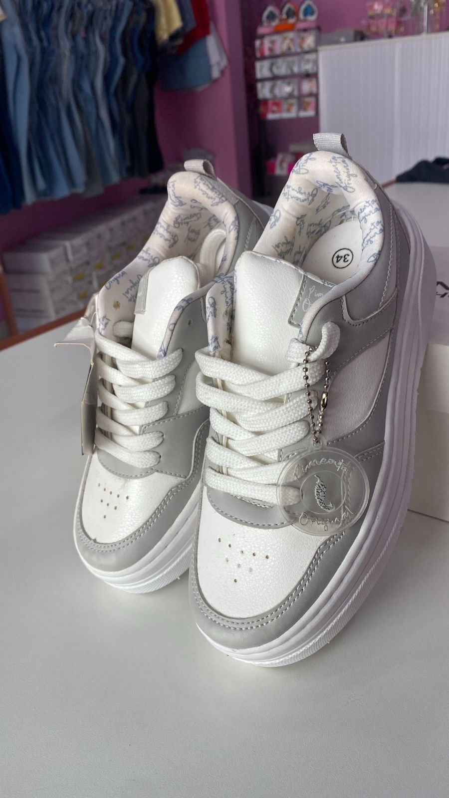 Modelo Casual Branco e Cinza