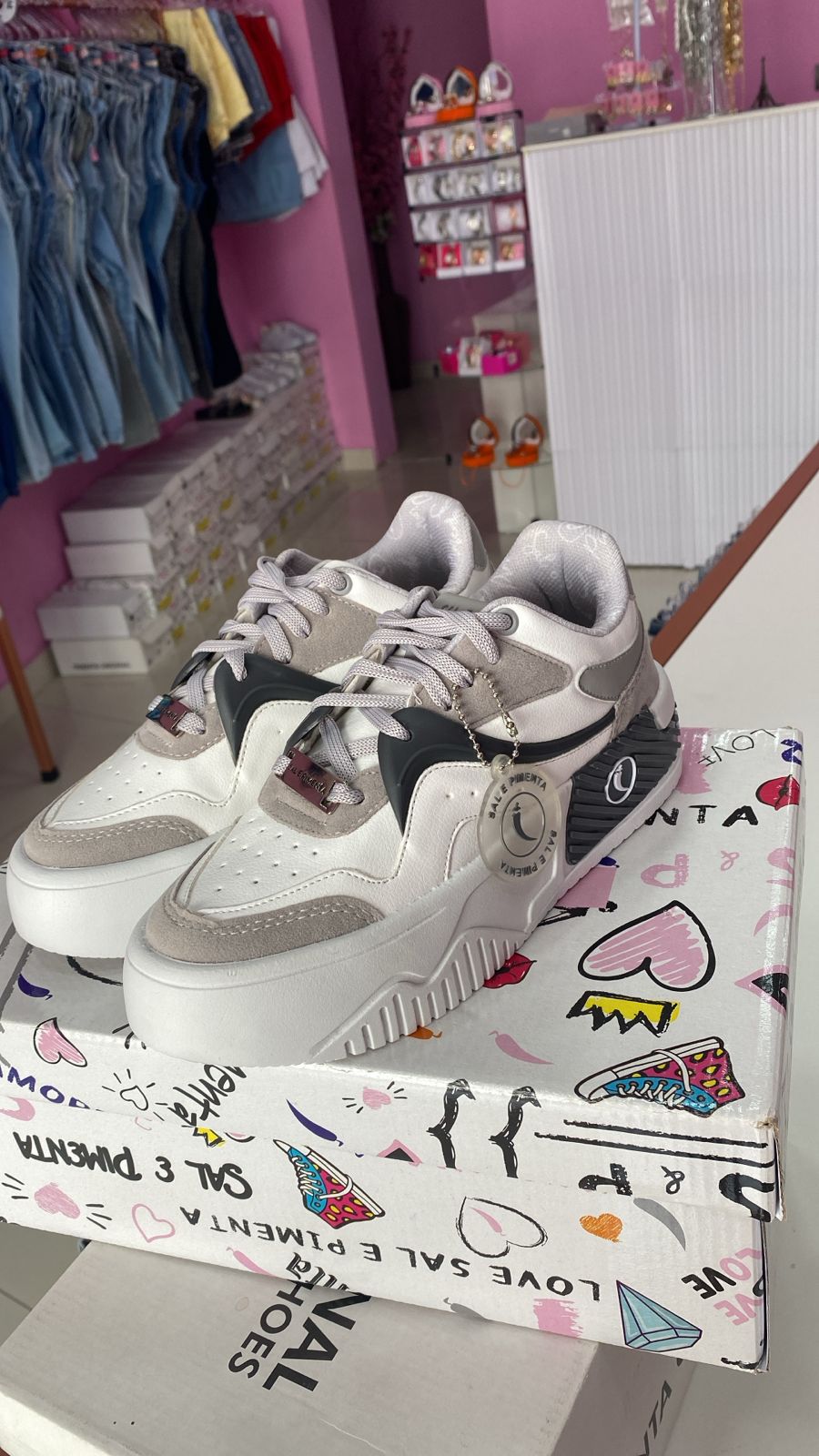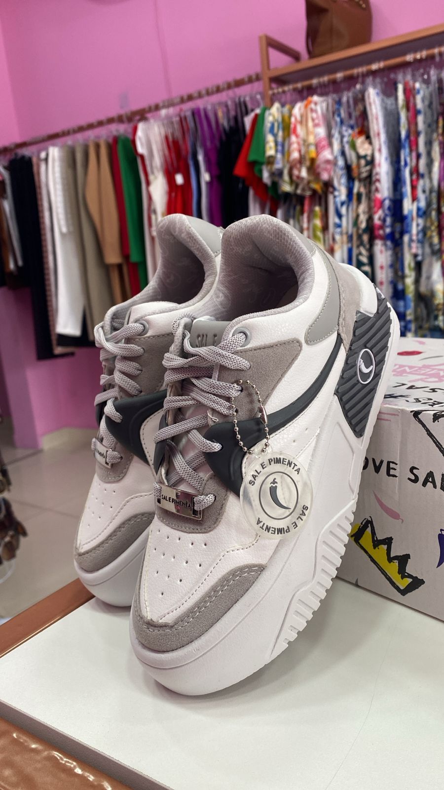 Perfeito para composições casuais e urbanas, o Tênis Sal e Pimenta combina com jeans skinny ou boyfriend, realçando um visual despojado e cheio de atitude. Para um toque mais feminino, aposte em saias midi ou vestidos leves, criando um contraste harmonioso entre conforto e delicadeza. Nos dias mais frios, ele se une perfeitamente a casacos oversized ou jaquetas de couro, mantendo a sofisticação mesmo nos looks mais despojados. E para completar, bolsas neutras ou coloridas podem potencializar sua personalidade em qualquer ocasião.